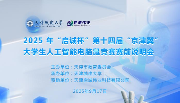 2025年11月22日,由天津市教育委员会主办、天津城建大学承办、天津启诚伟业科技有限公司冠名赞助的,2025年“启诚杯”第十四届京津冀大学生人工智能电脑鼠竞赛,在天津城建大学体育馆鸣锣开赛。